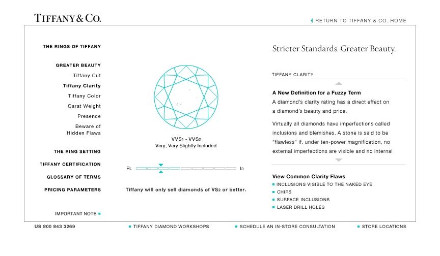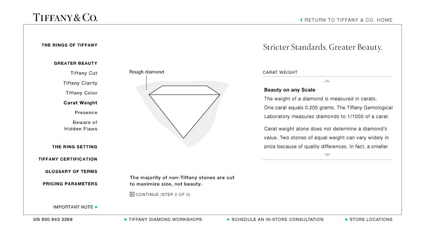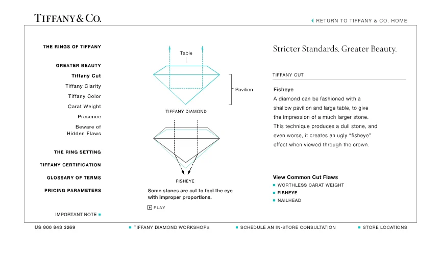 “A Tiffany Diamond” expresses the exceptional standards employed by the brand when acquiring precious metals and gemstones and describes the physics of beauty found in a Tiffany brilliant-cut diamond. This initiative included pocket-sized booklets for customers to reference and my team created a robust web presence that dove into more detailed content.